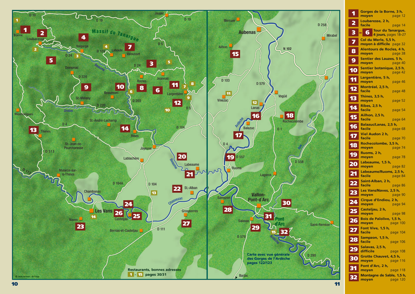 - 32 circuits de randonnée avec leurs cartes détaillées et profils d’altitude. Chacun avec sa trace GPS à télécharger.